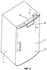 На фиг.1 изображен вид в перспективной проекции холодильника согласно первому варианту реализации изобретения. С корпусом 1 холодильника соединена дверь 2. Дверь 2 выполнена известным способом из металлического листа, согнутого вдоль нескольких вертикальных линий, для образования наружной стенки 3, боковых сторон 4 и не видных на фигуре, обращенных к передней стороне корпуса 1 планок, и из пластмассовой внутренней стенки 9 (см. фиг.2, 3), вертикальные кромки которой прикреплены к планкам. Внутренняя и наружная стенки ограничивают заполненную теплоизолирующим пеноматериалом полость 12. Горизонтальные кромки внутренней и наружной стенок не соприкасаются между собой, а соединяются с помощью верхнего и нижнего замыкающих элементов 5, 6, изготовленных из пластмассы методом литья под давлением.
