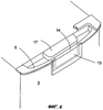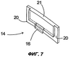 На фиг.7 изображена в перспективной проекции пластина 14, если смотреть с ее обращенной к корпусу 1 обратной стороны. Можно видеть окруженную с трех сторон краевой областью 20 сравнительно толстостенную центральную часть 21, рассчитанную так, что она с геометрическим замыканием входит в оконный вырез 13 замыкающего элемента 5, тогда как краевая область 20 ложится снаружи на наружную стенку 3. Короткий прочный гребень 16 отходит вниз от нижнего края центральной части 21 и входит в вырез пластины 7. Так же, как наружная стенка 3, пластина 14 имеет незначительный цилиндрический выгиб с выпуклой наружной стороной. Пластина 14 изогнута сильнее, чем наружная стенка 3, так что когда краевые области 20 своими кромками прижимаются к наружной стенке 3, то расположенная между ними часть пластины 14 в разгруженном состоянии немного выступает над наружной стенкой 3. Только когда пластина 14 будет путем нажатия на ее среднюю часть подвергнута небольшой упругой деформации, выступ 16 встанет точно над вырезом в пластине 7, так что его можно будет вдвинуть в вырез и тем самым прочно зафиксировать пластину 14. Так, простым способом можно обеспечить, чтобы вся краевая область 20 окна 14, а в особенности ее нижняя кромка с геометрическим замыканием, была прижата к наружной стенке 3, даже если имеет место некоторый технологически обусловленный разброс кривизны наружной стенки 3.
