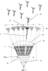 Известна также противовоздушная пучковая мина (RU 2000130070, кл. F 41 H 11/02, 2002), содержащая установленную на Земле заградительную боевую часть, снабженную доплеровским радиовзрывателем и выполненную в виде кумулятивного заряда направленного действия с гиперскоростными поражающими элементами.