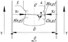 Измерение геометрических параметров установки колес и положения осей и мостов транспортного средства производят следующим образом. Устанавливают лазерные измерители 1 расстояний (см. фиг.1) с каждого из боков транспортного средства 3 на заданном расстоянии друг от друга перпендикулярно предполагаемой продольной оси транспортного средства навстречу друг другу с возможностью поступательного перемещения по параллельным направляющим 2. Лазерных измерителей может быть по три (для определения координат X, Y, Z) с каждой стороны транспортного средства, но может быть и по одному измерителю, установленному с возможностью поступательного перемещения вдоль оси Y и поворота в двух плоскостях для определения координат Х и Z. Далее поступательно перемещают лазерные измерители 1 относительно транспортного средства 3 по параллельным направляющими 2 и регистрируют в режиме непрерывного измерения с заданной частотой опроса пространственные координаты X, У, и Z i-тых точек боковых поверхностей кузова и колес соответственно с правой и левой сторон транспортного средства, данные измерений собирают в компьютер в графический редактор и получают графические контуры контролируемого транспортного средства в горизонтальной (см. фиг.2) и вертикальной плоскостях, графически проецируют левую часть горизонтального контура на правую и определяют недеформированные участки поверхности кузова, по недеформированным участкам, при условии горизонтального расположения кузова, определяют положение продольной оси OO’ транспортного средства, поворачивают горизонтальный контур до обеспечения параллельности продольной оси транспортного средства направляющим, определяют координаты середин внешних сторон дисков левого и правого колес 4 и 5 (точки А и С на фиг.3) транспортного средства и по разнице расстояний от середин дисков левого и правого колес (4 и 5) относительно найденной продольной оси OO’ определяют величины боковых смещений А мостов