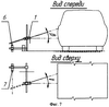 С учетом величин продольного смещения координат середин внешних сторон дисков правого (точка А) и левого колес (точки В и С) на фиг.4 определяют величину углового смещения мостов