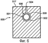 Отверстия 504 и 514 для связующего вещества обеспечивают легкий, удобный и эффективный доступ к зазорам 506 и 516 для приклеивания расходомерной трубки 501 к внутренним поверхностям 508 и 515.