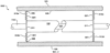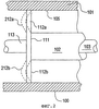 Фиг.2 иллюстрирует проблему, с которой сталкивается расходомер 100, когда температура расходомерной трубки 103 выше, чем температура кожуха 101. При таком условии стержень 111 растяжки, расходомерная трубка 103 и балансировочный стержень 102 увеличиваются в диаметре вследствие теплового расширения. Соединительные звенья 112а и 112b кожуха также стремятся увеличивать свою длину, поскольку их концевые участки соединены с расходомерной трубкой 103, имеющей более высокую температуру. Однако концевые участки, соединенные с внутренней стенкой 105 кожуха 101, не могут перемещаться по направлению наружу, поскольку кожух 101 имеет более низкую температуру и чрезвычайно твердый. При таких условиях соединительные звенья 112а и 112b кожуха сгибаются и принимают изогнутое наружу положение, представленное пунктирными линиями 212а и 212b. Или они могут принимать положение, изогнутое внутрь (не показанное), или одно звено может выгибаться наружу, а другое звено выгибаться внутрь (не показано). Силы и напряжения, которым соединительные звенья 112 кожуха подвергаются при этих условиях, могут сгибать эти элементы за их нормальные пределы деформации и подвергать их постоянному механическому разрушению, при этом точность расходомера снижается.