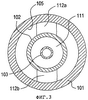 Фиг.3 представляет вид с торца, взятый по линии сечения 3-3 на фиг.1. Можно заметить, что соединительные звенья 112 кожуха являются плоскими и узкими элементами, корректирующими внутреннюю стенку 105 кожуха 101 и наружную поверхность балансировочного стержня 102. Стержень 111 растяжки представляет собой круглую подобную шайбе деталь, соединяющую балансировочный стержень 102 с расходомерной трубкой 103 и имеющую центральное отверстие для приема расходомерной трубки 103.