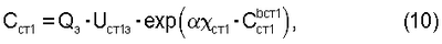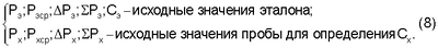 Далее, на основе уравнений (2) для Lэх, рассчитывается разность Рст1 элемента пробы, соответствующая найденному по п.5 значению Cст1: