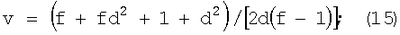 где v=(f+fd2+1+d2)/[2d(f-1)];