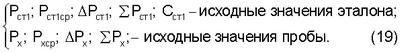 Этапы повторяются до тех пор, пока с заданной степенью точности полученное значение разности входных параметров внутреннего стандарта Pстi на последнем этапе вычислений i не будет совпадать с измеренным значением в пробе Рх, т.е.:
