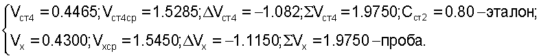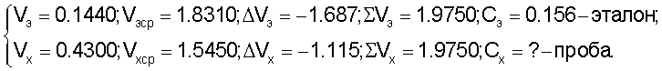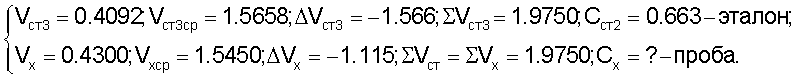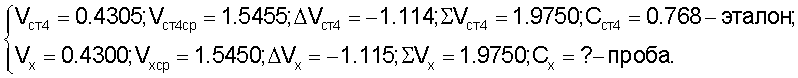 рассчитывают содержание искомого элемента в пробе Сх по системе уравнений