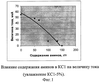 Пример 5. Проводили оценку изменения показаний поверхностной электропроводности с течением времени образцов соли KCl с различным содержанием аминов (при начальной степени увлажнения образцов 10%) через 0.5 минут, через 30 и 60 минут. Результаты измерений величины поверхностного тока показали, что за счет испарения воды с поверхности образца в течение часа происходит изменение показаний поверхностного тока на 5-10% отн. Измерения показаний поверхностного тока аминированных образцов хлорида калия показали также, что стабильные показания величины тока наблюдаются при фиксированной силе прижатия ялектроячейки к поверхности образца. В связи с этим для стабилизации показаний измерений поверхностного тока ячейка должна иметь постоянный вес, обеспечивающий одинаковую силу прижимания электродов к поверхности порошка KCl только за счет собственного веса.