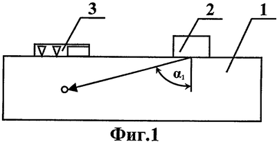 Для пояснения описываемого способа на чертеже приведена схема определения угла ввода: на фиг.1 – для стандартного образца; на фиг.2 – для контролируемого объекта.