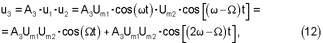 На входы перемножителя 3 подаются исходные сигналы обоих генераторов, поэтому на выходе получаем