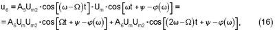 На выходе ФНЧ 7 (полагаем для простоты, что фильтры 7 и 9 имеют единичную передачу в полосе прозрачности) составляющая удвоенной частоты подавлена, поэтому