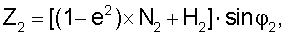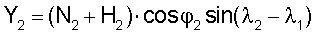 где N2 – радиус вертикалов ЛА истребителя, Н2 – высота истребителя, 2,1 – долгота истребителя и цели.