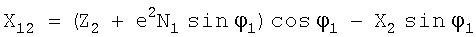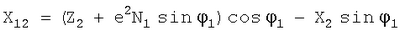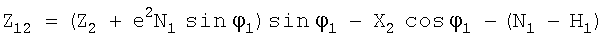где Ni – радиус кривизны первых вертикалов, а, е2 – большая полуось и квадрат эксцентриситета эллипсоида, относительно которого определены координаты истребителя 1, 1, h1 и цели 2, 2, h2.