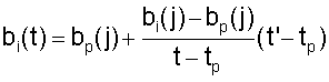 где j-=1,…n, n – количество параметров во входном потоке, bi(t) – текущее значение j-го параметра, bp(t) – предыдущее значение j-го параметра, t – текущее время, соответствующее j – параметру, tp – значение времени в предыдущий момент, t’ – значение времени, в которое должно произойти совмещение информации.