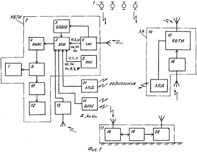 Информация бортовых систем СНС 6, ИНС 9, БРЛС 11 посредством адаптера вводится в буфер ввода вычислителя БЦВС 4. Выборка обрабатываемых параметров из буфера ввода и их первичная обработка осуществляется в соответствии с выбранным составом параметров. Затем подключается соответствующая процедура в программе обработки.