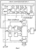 Устройство информационной системы обслуживания датчиков метеопараметров воздушной среды и почвы (фиг.6) состоит из датчика 1 углов горизонта, выдающего сигналы, пропорциональные углам отклонения ультразвуковых датчиков 2 метеопараметров воздушной среды от вертикального положения, пульт 3 управления, подключенный преимущественно к бортовой электросети или автономному источнику электропитания и состоящий из источника вторичного электропитания 4, обеспечивающего стабилизированное напряжение порядка 5В датчиков 2 метеопараметров воздушной среды и датчиков 5 почвы и порядка 130В – акустического термоанемометра 6, выдающего информацию в микроконтроллер 7 датчиков 2 воздушной среды в виде последовательных двоичных кодов, соответствующих измеренным значениям времен прохождения ультразвуковых сигналов в четырех различных направлениях между парами пьезоэлектрических преобразователей (не показаны) датчиков параметров воздушной среды, составляющих ультразвуковую систему термоанемометра 6, закрепленных на сферообразном элементе из двух колец (не показаны), установленном на штоке устройства измерения метеопараметров воздушной среды (см. фиг.1). Датчики 2 расположены во взаимноортогональных плоскостях и ориентированы вертикально. При этом микроконтроллер 7 датчиков 2 воздушной среды предназначен для аналого-цифрового преобразования сигналов датчиков 2 воздушной среды и для передачи цифровых кодов через интерфейс 8 в микроконтроллер 9 пульта 3 управления, в который также поступают цифровые коды сигналов датчиков 5 почвы, и который соединен с дисплеем 10, запитываемым от источника вторичного электропитания.