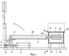 – для осуществления поворота пневмоцилиндра вертикально вниз последний жестко закреплен на валу приводной шестерни зубчатой передачи, расположенной внутри П-образной рамы, и установлен с возможностью вращения в горизонтальной плоскости на перемычке рамы, при этом рама установлена в вертикальных опорах основания с возможностью поворота относительно горизонтальной оси, на одной из боковых сторон рамы горизонтально жестко закреплен стакан с винтовым пазом, а на основании соосно стакану смонтирован дополнительный пневмоцилиндр, шток которого расположен в стакане и снабжен пальцем для его одновременного перемещения в винтовом пазу стакана и прямоугольном пазу пластины, закрепленной на основании,