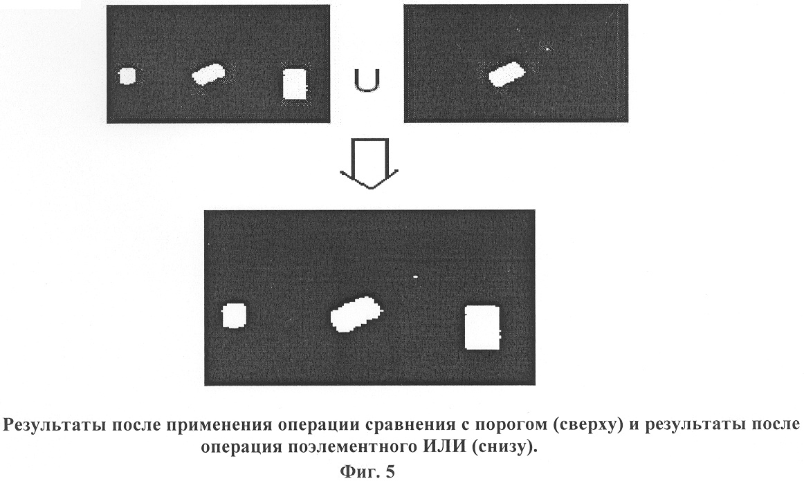 Далее было проведено сравнение яркости точек двух полученных изображений с пороговым значением и поэлементная логическая операция ИЛИ между полученными бинарными изображениями.