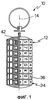 В соответствии с возможным вариантом выполнения стержень 38 имеет первый стопор 40, жестко прикрепленный к одному его концу. В примере, представленном на указанных чертежах, стопор 40 имеет форму диска, от которого отходит буртик 300 с отверстием 320, в котором может быть размещено, например, кольцо 340 или какое-либо крепежное приспособление, благодаря которому устройство 10 может использоваться в качестве брелока для ключей.