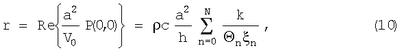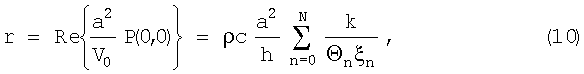 Для определения поля Р используется следующий прием. Если размеры резонатора малы по сравнению с длиной волны, то этот резонатор рассматривается как колебательная система с одной степенью свободы. Сосредоточенные параметры системы определяются размерами горла и объемом жидкостной полости резонатора. Обозначают через V0 объемную скорость, создаваемую резонатором при воздействии на него падающего поля P0. Выражают рассеянное поле в волноводе через величину V0. Поле, создаваемое резонатором, равно: