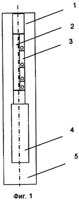 На фиг.1 изображено: 1 – насосно-компрессорная труба, 2 – преобразовательная насосно-компрессорная труба (переходник), 3 – четвертьволновый резонатор, 4 – погружной центробежный электронасос, 5 – скважина.