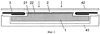 Как показано на фиг.5, поверхность второго металлизированного покрытия 22, поверхность базового элемента 1 и поверхность изоляционного слоя 51 лежат в общей плоскости. Традиционные стандартные подложки, применяемые преимущественно в качестве изоляционного элемента, не удовлетворяют требованиям в отношении ровности их поверхности для использования в модулях “Press-Pack”, их необходимо обрабатывать механически, например фрезерованием или шлифованием. Прецизионное фрезерование благодаря расположению в виде общей поверхности может сопровождаться при изготовлении полупроводникового модуля согласно изобретению фрезерованием изоляционного слоя и проводиться за одну рабочую операцию. Наряду с упомянутым упрощением монтажа полупроводниковых элементов такое расположение позволяет также применять типовые торцевые контакты 8, содержащие контактные пружины и обеспечивающие достаточное прижимное усилие, воздействующее на полупроводниковые элементы 6.