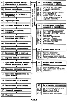 Изготовление модуля заканчивают его финишным контролем (опер.17) в соответствии с техническими условиями на модуль и упаковкой (опер.18) в тару, защищающую модуль от статического электричества.