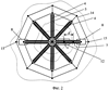 Верхние концы всех НИ 4 и ВП 6 электрически соединены (точка «а» на фиг.1). Нижние концы НИ 4 электрически соединены друг с другом дополнительным кольцевым проводником 7. Нижние концы (НИ) 4 через ЭН 8, а нижний конец ВП 6 непосредственно подключены к противовесу 9.
