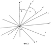 Процесс углового наведения и стабилизации диаграммы направленности антенны иллюстрируется фиг.2, на которой изображена ортогональная система координат, ось Oz которой направлена вдоль оси двигателя вращения рамы опорно-поворотного устройства, ось Ox – горизонтально перпендикулярно оси Oz, а ось Oy – вертикально. Предполагается, что в начальном положении ось диаграммы направленности антенны в целом направлена вдоль оси Oy, а оси диаграмм направленностей отдельных излучателей смещены относительно ее на фиксированные углы, определяемые положением излучателя в блоке излучателей. При повороте рамы опорно-поворотного устройства двигателем вращения рамы опорно-поворотного устройства на некоторый угол места ось диаграммы направленности антенны смещается на данный угол в плоскости xOy (ось Oy ). На такой же угол смещается ось вращения дуги опорно-поворотного устройства (ось Ох ). При повороте дуги опорно-поворотного устройства двигателем вращения дуги опорно-поворотного устройства на некоторый угол наклонного азимута ось диаграммы направленности антенны смещается на этот угол и занимает положение Oy , с которым также совпадает ось двигателя вращения блока излучателей. Поворот блока излучателей двигателем вращения блока излучателей обеспечивает вращение диаграммы направленности антенны вокруг своей оси. В результате осуществляются угловая стабилизация и наведение многолучевой диаграммы линзовой антенны.