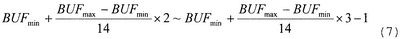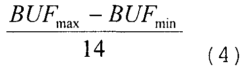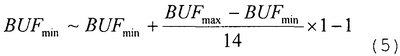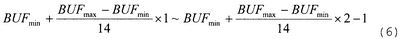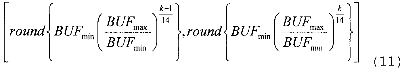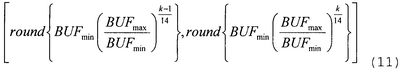 В уравнении (11) “round( )” означает функцию округления для округления нецелого значения в круглых скобках. В уравнении (11) значение в круглых скобках квантуется неравномерно по логарифмической шкале в диапазоне между определенными значениями BUFmin и BUFmax.
