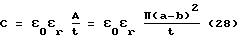 Емкость плоского конденсатора, образованного в виде ступицы тора, определяется из уравнения