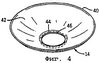 Как показано на фиг.4, первый чашеобразный резервуар 14 имеет большой круглый ободок 40, от которого внутренняя поверхность 42 проходит вниз с постепенным наклоном к нижней части внутреннего пространства чашеобразного резервуара. В центре днища или нижней части чашеобразного резервуара имеется большое круглое сквозное отверстие 44. Первый чашеобразный резервуар 14 может быть размещен в любом месте на рабочей поверхности 24 и снят с нее, когда чашеобразный резервуар не требуется. Первый чашеобразный резервуар 14 имеет площадь его проекции на горизонтальную плоскость, составляющую менее 100 квадратных дюймов. Как показано на фиг.5 и 6, на нижней поверхности первого чашеобразного резервуара 14 имеется кольцевая уплотняющая прокладка 46 из упругого материала (например, из резины), прикрепленная к ней вокруг центрального отверстия 44. Когда первый чашеобразный резервуар 14 размещен на рабочей поверхности 24, как показано на фиг.5, уплотняющая прокладка 46 образует по существу водонепроницаемое уплотнение между чашеобразным резервуаром и рабочей поверхностью. Могут быть предусмотрены другие средства для предотвращения прохода воды, находящейся в чашеобразном резервуаре, между чашеобразным резервуаром и поверхностью подставки для мытья. Например, соприкасающиеся поверхности чашеобразного резервуара и подставки для мытья могут быть выполнены очень гладкими для образования зоны плотного контакта, через которую вода не может пройти легко. На этих соприкасающихся поверхностях также могут быть выполнены элементы для взаимоблокировки, такие как выступ и канавка, предназначенные для воспрепятствования проходу воды.