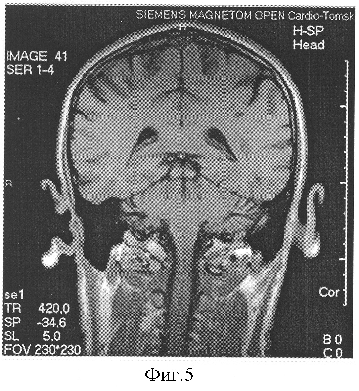 На фиг.5 изображено МРТ исследования головного мозга в после операционном периоде.