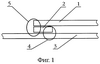 1 – задняя стенка кондуита; 2 – полоска ткани из ксеноперикарда; 3 – задняя стенка аорты, 4 – обвивной шов, фиксирующий проксимальный край пластины из ксеноперикарда к задней стенке аорты; 5 – обвивной шов, проходящий через заднюю стенку кондуита, полоску из ксеноперикарда и заднюю стенку аорты, не выходя на ее наружную поверхность.