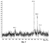 На 4-той стадии очистки (фракции 6 из предыдущей стадии) был изменен состав элюирующей системы (вместо ТФУ использовали раствор ацетата аммония), что позволило улучшить разделение (фиг.6). В результате Tyr-содержащий пик с m672 обнаружился во фракции 5 ( 13 мин), остатки Trp-содержащего вещества вышли во фр.4 ( 10 мин). Изменение элюирующей системы позволило также отделить вещества, содержащие ароматические соединения, не принадлежащие к аминокислотам ( max 215 и 268 нм, ( 9 мин) и max 225 нм и 268 нм ( 14,8 мин) соответственно). Массовый состав фр.5 был m672, 694 (m + Na), 711 (m + К) (фиг.7), и биологическая активность была сосредоточена в этой фракции.
