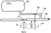 Устройство для автоматического регулирования работы вентилей на противопожарном трубопроводе работает следующим образом. При взрыве метана и (или) угольной пыли взрывная волна отклоняет флажок-индикатор 1 от вертикального положения I в положение II. В результате поворота оси вала 2 длинное плечо рычага 4, потеряв опору, под действием гравитационного груза Q поворачивается по часовой стрелке и теряет несущую способность. Тяга 6 под действием гравитационного груза Q, собственного веса и веса зубчатой рейки 8 опускается. Зубчатая рейка 8, опускаясь, одной стороной, поворачивает шпиндель вентиля 11 на несколько оборотов (или пробку крана на угол 90°). В результате чего доступ воды из противопожарного трубопровода 12 прекращается. А другая сторона рейки вращает зубчатое колесо 10 против хода часовой стрелки и открывает доступ углекислого газа в противопожарный трубопровод 12, откуда он поступает к очагу возможного пожара или к месту возникновения взрыва метана и (или) угольной пыли, где противопожарный трубопровод открыт.