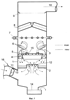 Устройство работает следующим образом: дымовые газы из котлоагрегатов поступают в корпус аппарата (фиг.1) из входного газохода (11) под газораспределительную диафрагму (2) эмульгатора, где происходит равномерное распределение образующейся пульпы через прорези в водосливной обечайке. В этой зоне улавливается до 88% пыли.