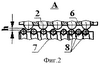 Помимо статического воздействия Рст на обрабатываемую поверхность 1 деформирующие элементы 2 оказывают импульсное Рим ударное воздействие с помощью вибратора. Витки 8 пружины вибратора при работе занимают положение между витками деформирующей пружины 2, при этом натяг составляет величину h, равную h=0,15…0,35 мм (см. фиг.2).