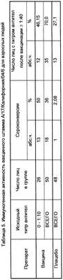 При изучении в реакции РТГА сывороток крови 26 серонегативных вакцинированных лиц был обнаружен 4-кратный и более прирост сывороточных антител к эпидемическому штамму А/Калифорния/7/04 (H3N2) в 50% случаев. Средние геометрические титры антител во вторых сыворотках у лиц с 4-кратными и более приростами антител составили 1:34,09. Результаты серологического исследования приведены в таблице 5.
