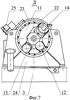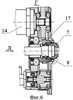 На фланце корпуса КП 2, обращенном к двигателю 1, размещен однорядный шестеренчатый редуктор 11, на выводных валах которого (см. фиг.6, 7) установлены гидронасосы – 12 для принудительной смазки насоса высокого давления и 13 – смазки КП, а также гидронасос 14 для питания гидромотора 15 привода центробежного вентилятора 16 системы охлаждения.