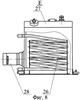 на фиг.8 – вид на масляный бак двигателя с вырывом по теплообменнику системы предпускового подогрева, вид Е на фиг.4;