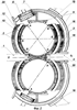 2-й – штанги 18, направляющие 19, диски 20 вместе с неподвижными в корпусе направляющими 19 для штанг 18, которые меняют посредством дисков 20 противостоящие кольца фрикционного контакта. При одновременном вращении от колец диски 20, двигаясь в плоскости или параллельно оси OO1, нажимают в скольжении следующее «отжатое» от шара 10, своей пружиной зазора, кольцо.