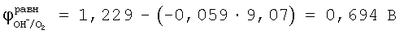 Равновесные потенциалы водородного и кислородного электродов при pH -9,07 соответственно равны: и . Чтобы окисление металла могло иметь место, должен быть отрицательнее, чем [4]. Расчеты показывают, что при данном значении pH наиболее вероятна коррозия с кислородной деполяризацией. Изменение энергии Гиббса реакции