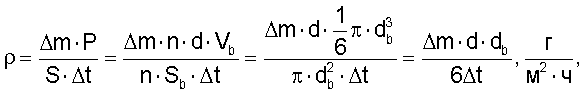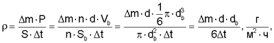 где n – количество шариков; d – плотность металла, г/м3; Vb – объем одного шарика, м3; Sb – площадь его поверхности, м2; db – диаметр шарика, м2; t – интервал времени, ч.