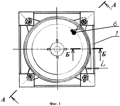 На фиг.1 приведено устройство для проведения способа оценки эффективности действия ингибиторов коррозии металлов и их сплавов на базе стиральной машины с установкой автобалансирующего устройства, вид сверху; на фиг.2 показан поперечный разрез А-А устройства на фиг.1; на фиг.3 представлен разрез Б-Б на фиг.1; на фиг.4 представлено балансировочное кольцо; на фиг.5 представлен перфорированный желоб, вдоль которого перемещаются шарики; на фиг.6 изображена структурная пространственная схема устройства для проведения способа оценки эффективности действия ингибиторов коррозии металлов и их сплавов на базе стиральной машины с установкой автобалансирующего устройства.