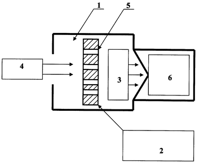 Далее, ионный ток в цепи коллектора 3 отрицательно заряженных ионов органических молекул, образовавших в результате взаимодействия органических молекул с электронами, захваченными при столкновении с поверхностью полимерной пленки, обладающей радиоэлектретным эффектом, регистрируют и анализируют. Для чего используют спектрометр 6 дрейфовой подвижности ионов, который идентифицирует отрицательные ионы по скорости их дрейфа в электрическом поле в присутствии атмосферного воздуха.