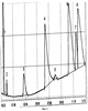 На фиг.4 приведена хроматограмма, из которой видно, что полное разделения компонентов смеси не достигнуто.
