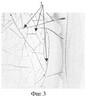 На фиг.3 представлена микрофотография (увеличение ×40) фации плазмы крови больной раком молочной железы без паранеопластической полиневропатии, где показана сеть прямых трещин в центральной зоне фации (указаны стрелками 3).
