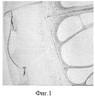 При исследовании плазмы крови методом клиновидной дегидратации выявлялось сочетание двух признаков – волнообразных трещин в центральной зоне фации и морщин в периферической зоне фации. Микрофотография (увеличение ×40) фации плазмы крови представлена на фиг.2, где 2А – волнообразные трещины в центральной зоне фации (указаны стрелками 1) и 2Б – морщины в периферической зоне фации (указаны стрелками 2). В крови обнаружены анти-Hu антитела.